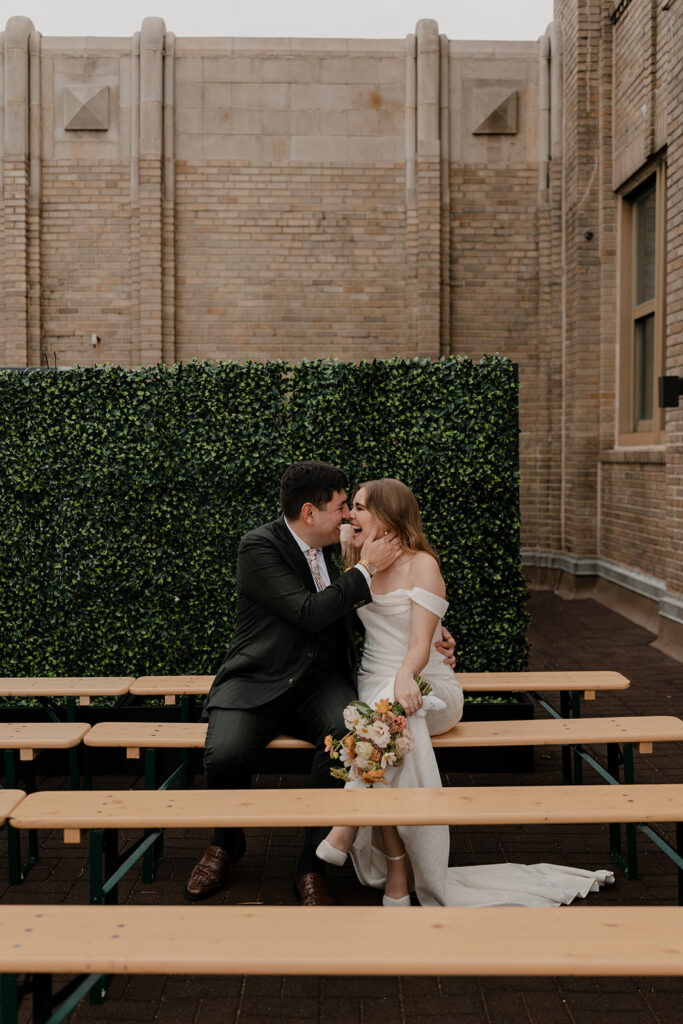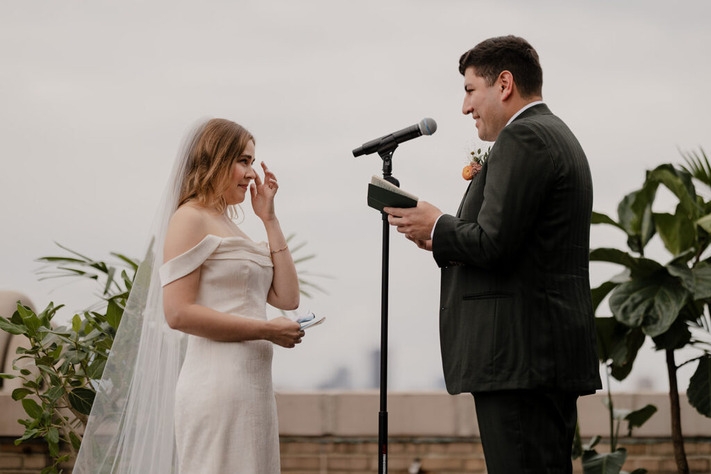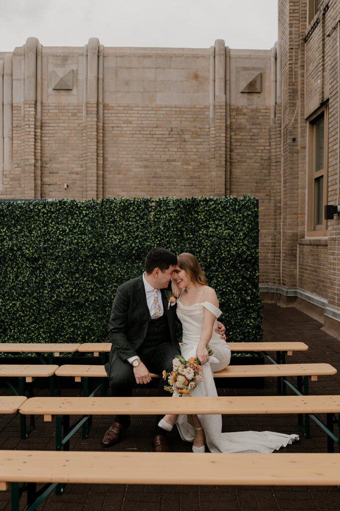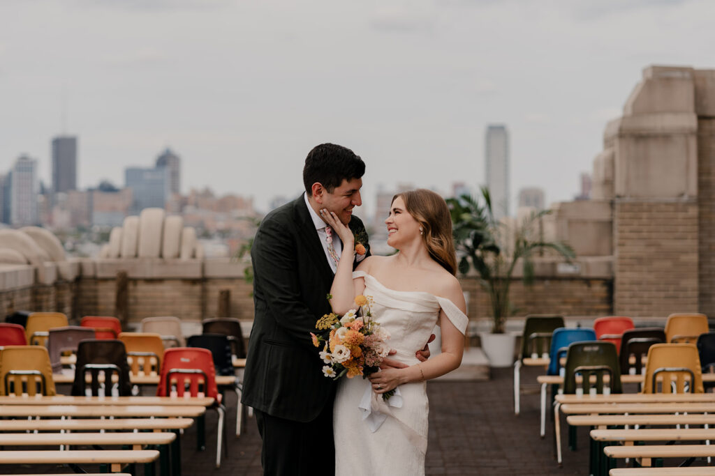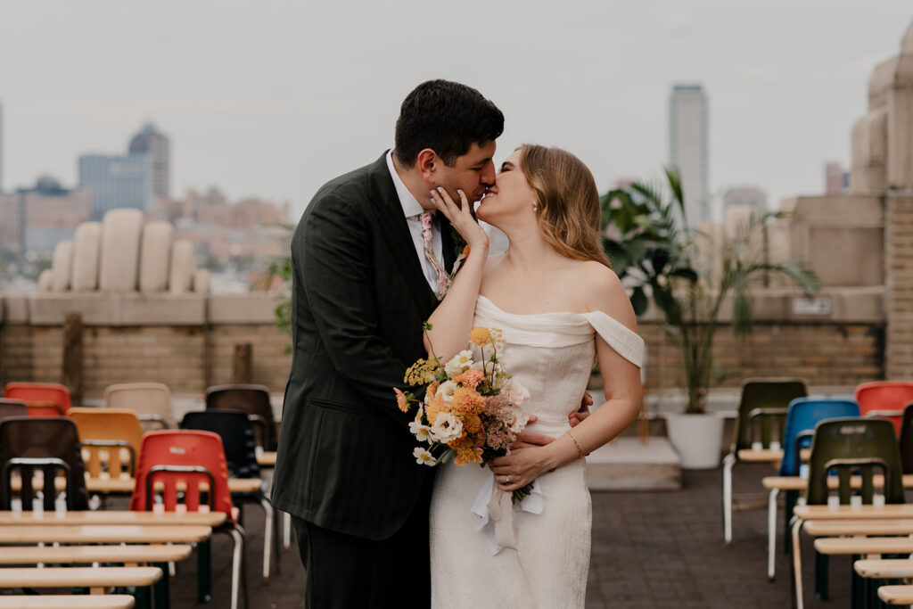 This late-summer rooftop wedding took place at the iconic Bok Building in the heart of South Philadelphia. Bok is special not just because of its stunning views or fun school vibes, but all the love, stories, businesses and people that came together to make this wedding and the Bok building what it is! To those who don’t know about Bok, it is a former high-school that has been repurposed into workspaces for Philadelphia makers, businesses, nonprofits, and artists. There’s nothing more romantic than perfectly executing a wedding that is close to home, supports local businesses and artists, and most importantly, fosters love, connection, and a lifetime of memories. That’s just a small piece of what made Corrie and Cody’s day truly, unforgettable. *if you’re not crying yet, I hope you will be*