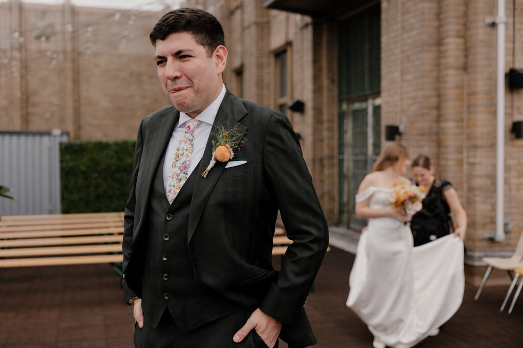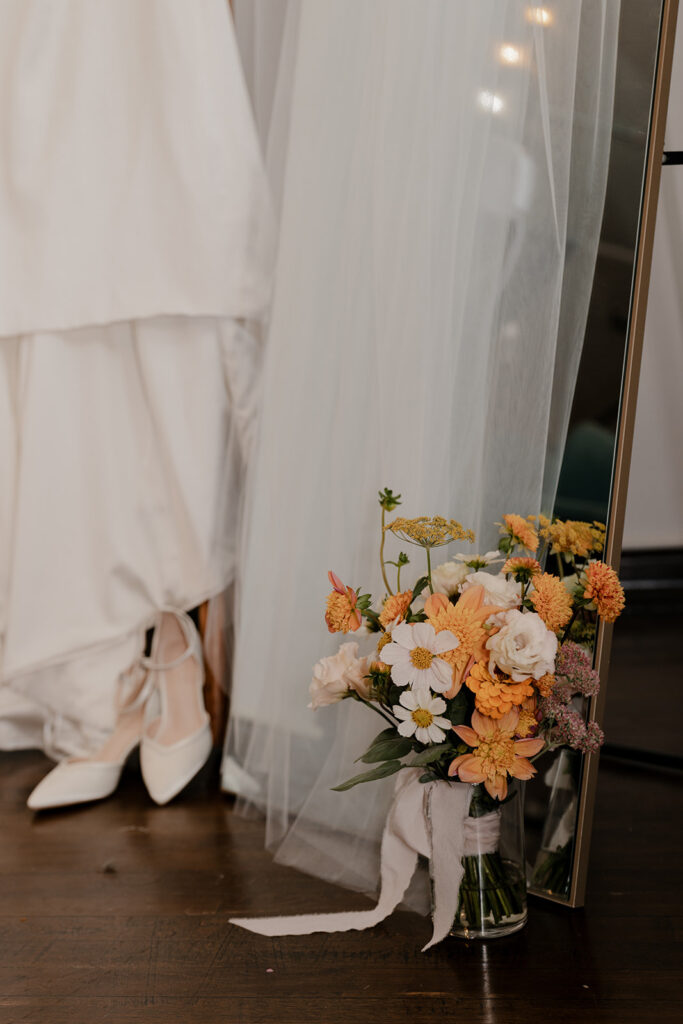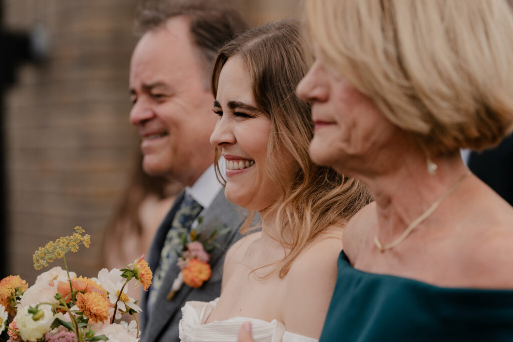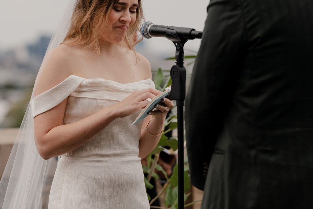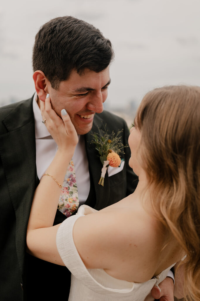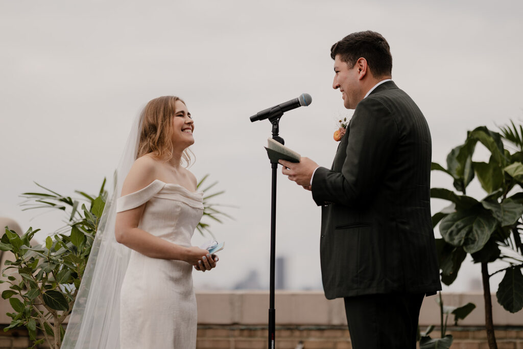 Thoughtful planning and coordination by the oh so lovely, Philly DIY Weddings made the day flow seamlessly from start to finish (which is impressive when there’s only one elevator and multiple floors involved!). Jackie and her team also handled the florals, hand-picked and curated with soft pinks, peaches, oranges, yellows and cream- YUM! The beautiful ceremony unfolded on the Rooftop, surrounded by the couple’s close friends and family, where the warm summer air and vibrant greenery framed a full 360-degree cityscape.