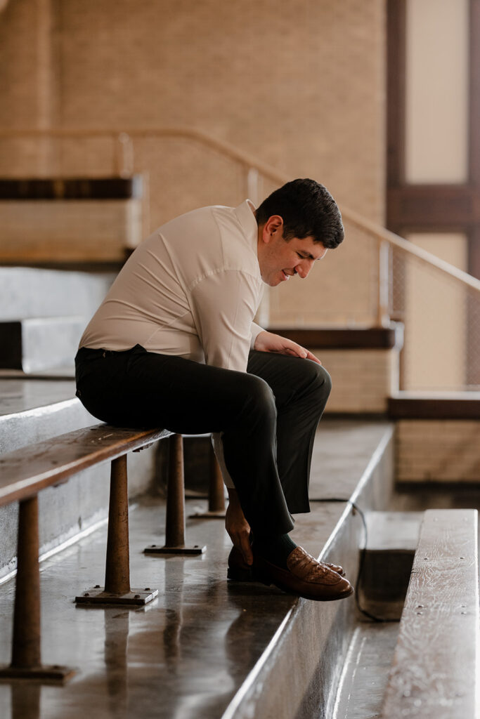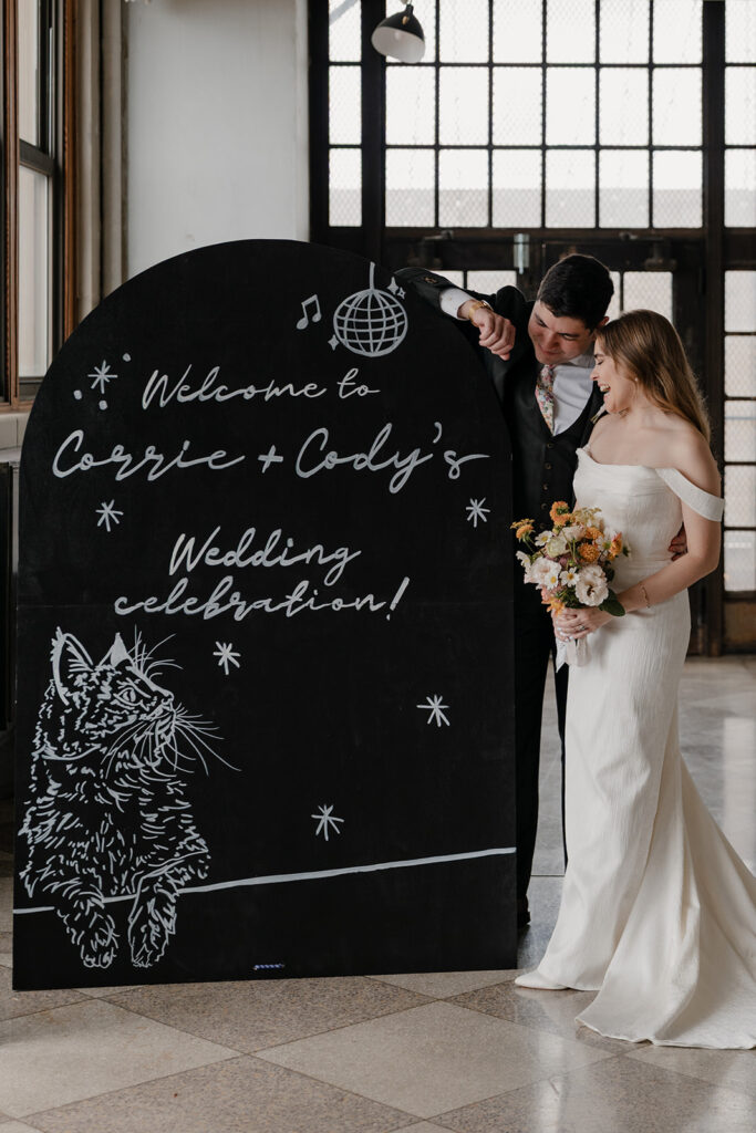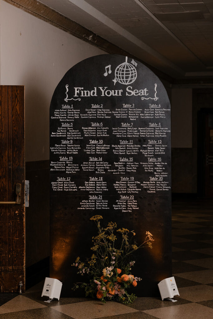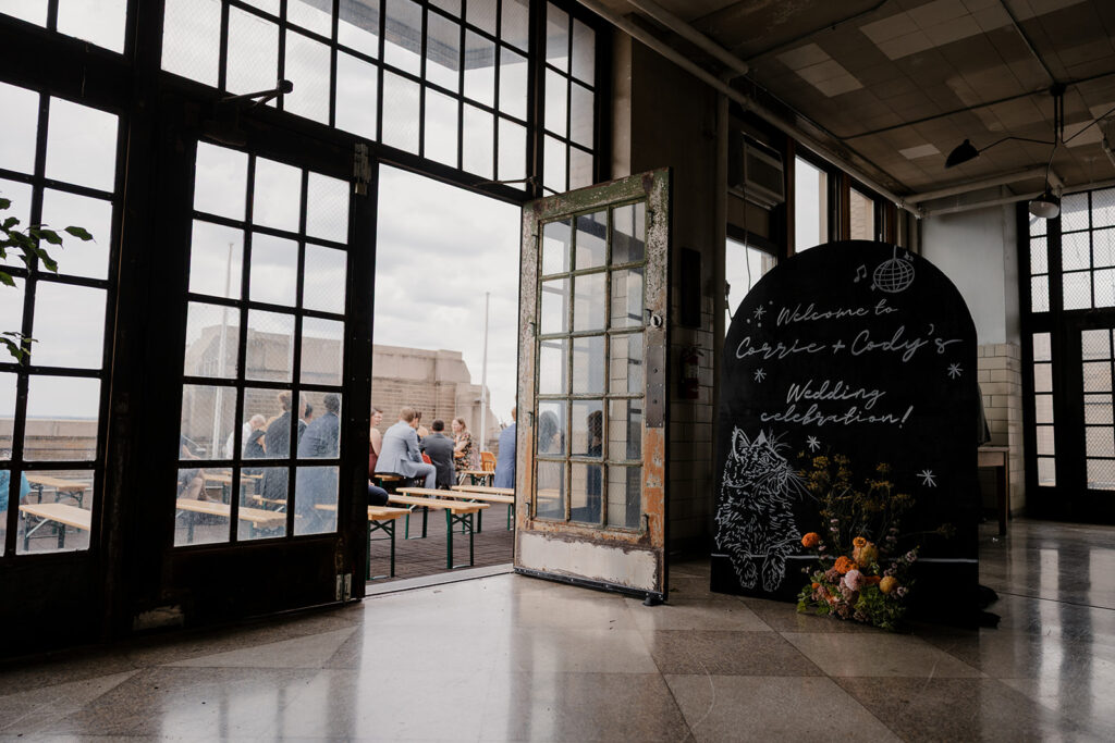 We got to pretend be to in the high school play as we took family photos and some portraits in the dark Auditorium. During the cocktail on the rooftop, amongst many nostalgic stories being shared, we snuck in a few more photos and caught lots of guests mingling and enjoying the views. One of many chalkboard signs hand-crafted by Woodzi welcomed guests into the retired West Gym.