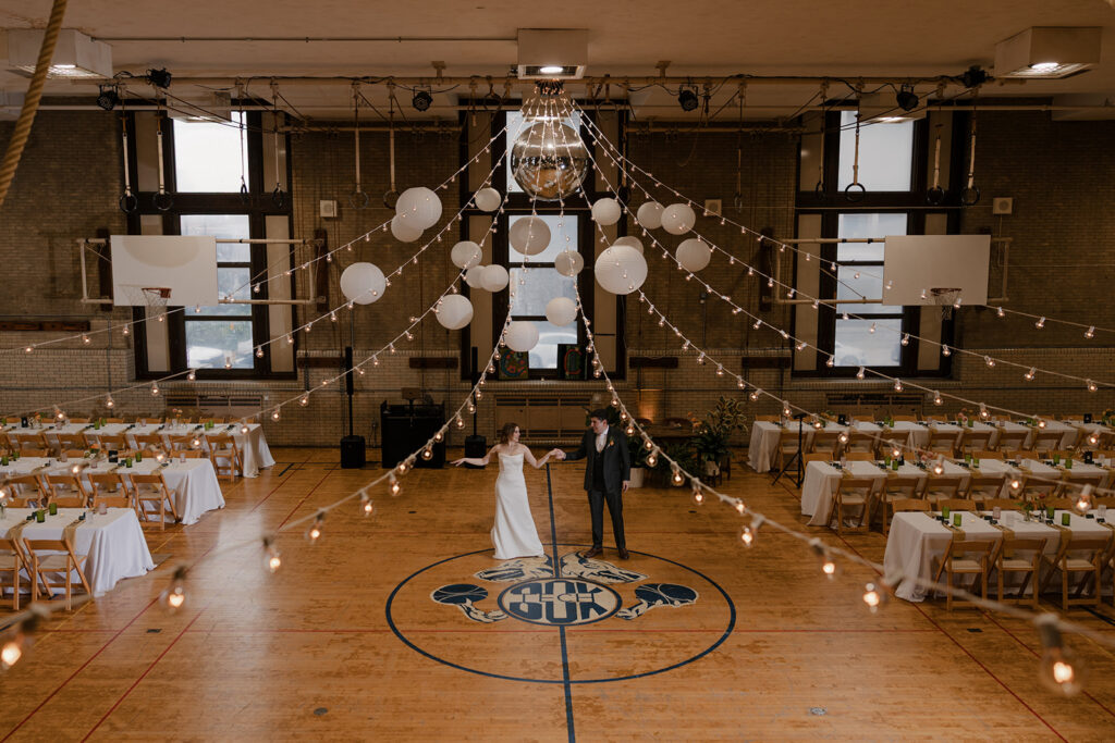 Once everyone was done eating, Domino Dancing (aka Wesley Bunch) kept the dance floor packed all night with all the different genres! Laughter echoed through the gym, drinks flowed freely, and the energy stayed high! The vibe felt like an adult-style prom, complete with twinkling overhead lights and a dance floor centered over the gym’s original logo.