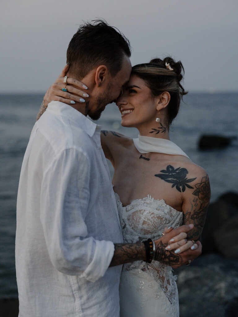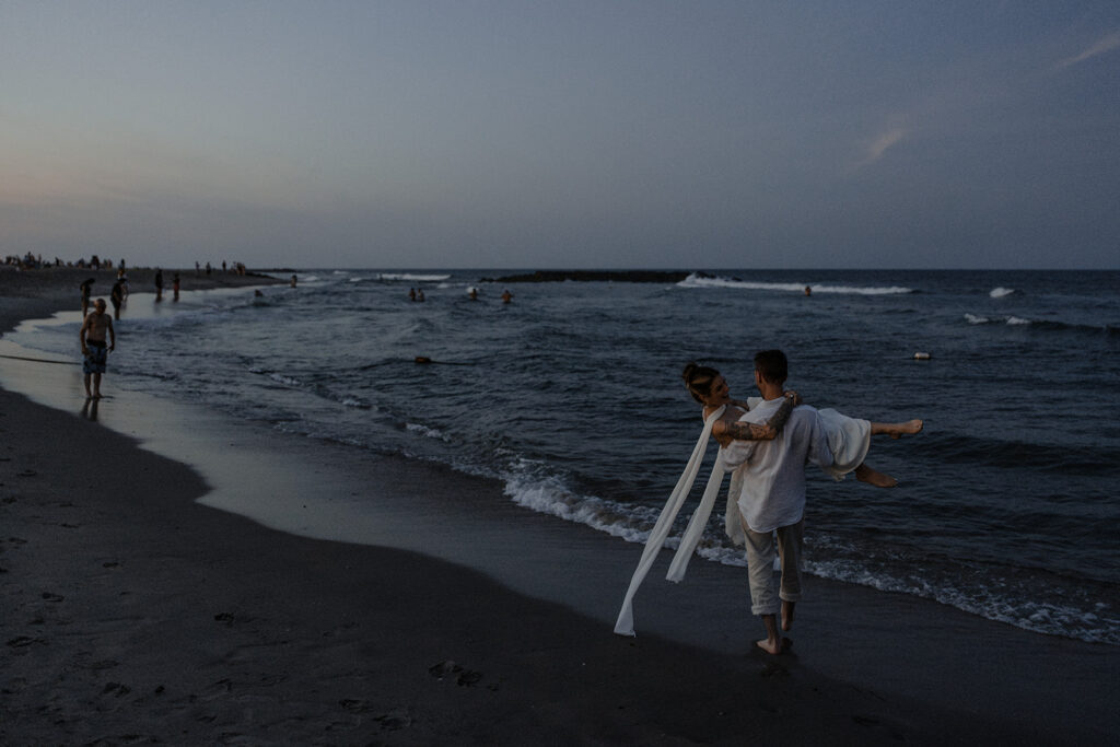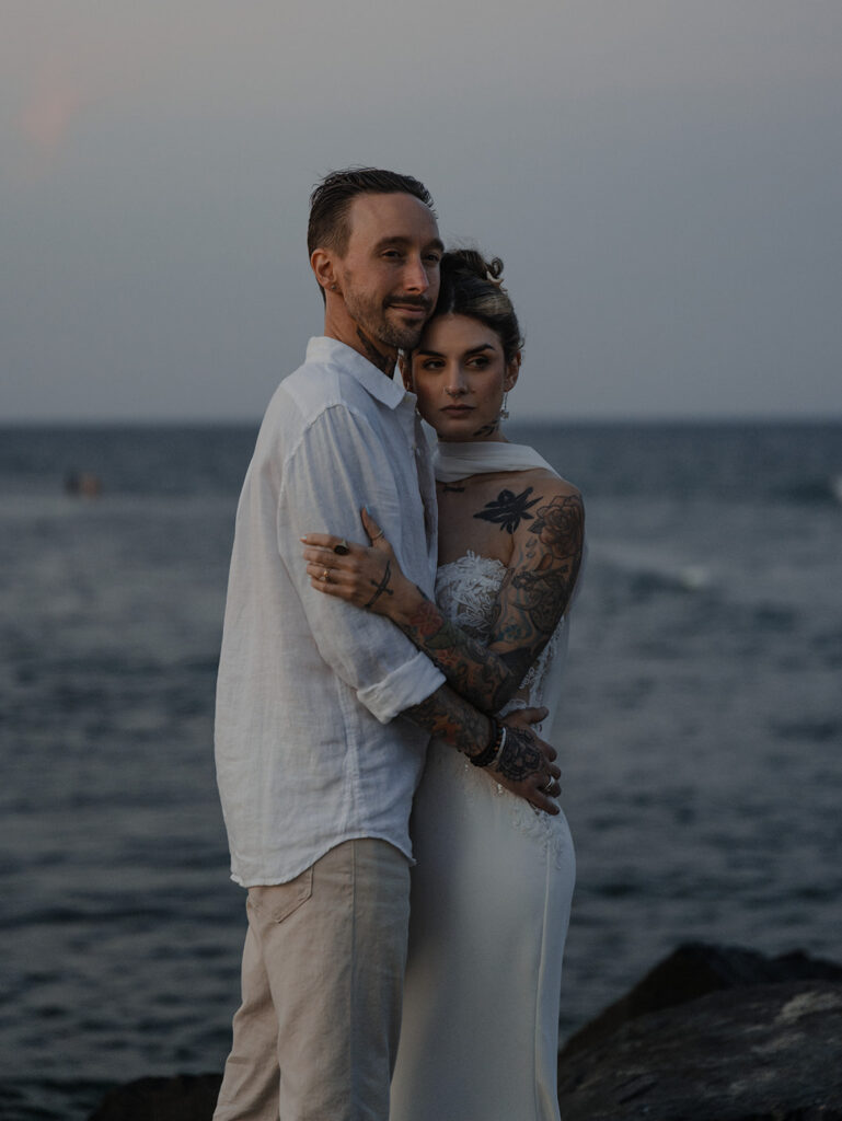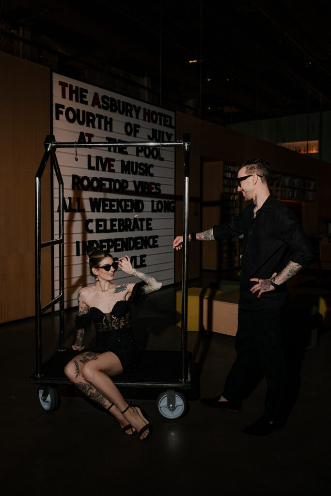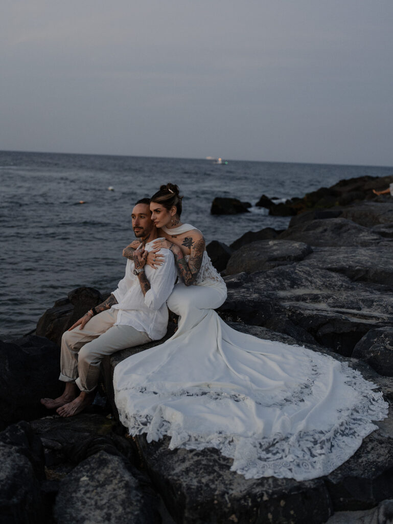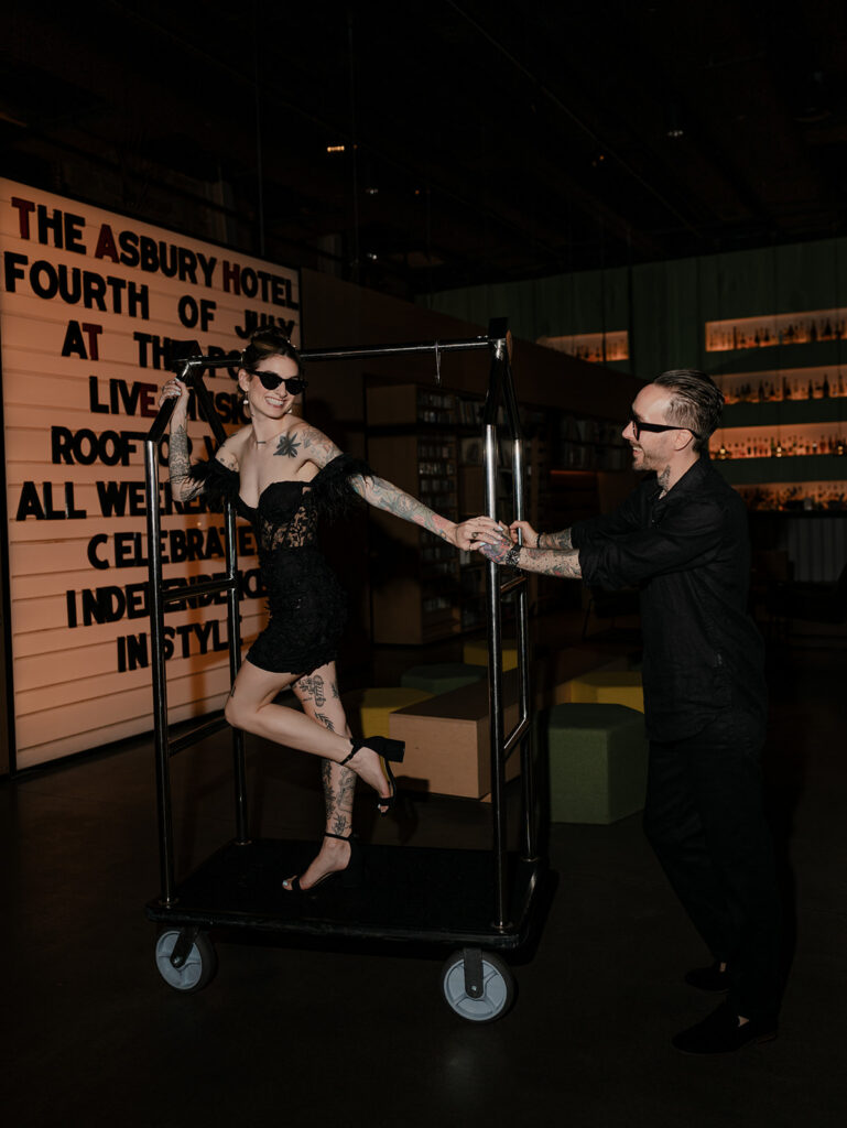 Chelsea and Michael renewed their vows during an intimate gathering at The Asbury Hotel in Asbury Park, New Jersey. After the vow renewal ceremony, they took the celebration to the boardwalk and shoreline, soaking in the romantic summer sunset. We finished out the night back at the hotel with a bold, paparazzi-inspired editorial shoot for these two rockstars!