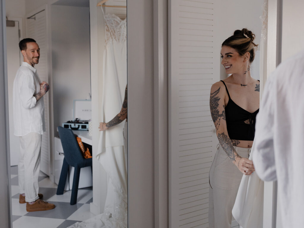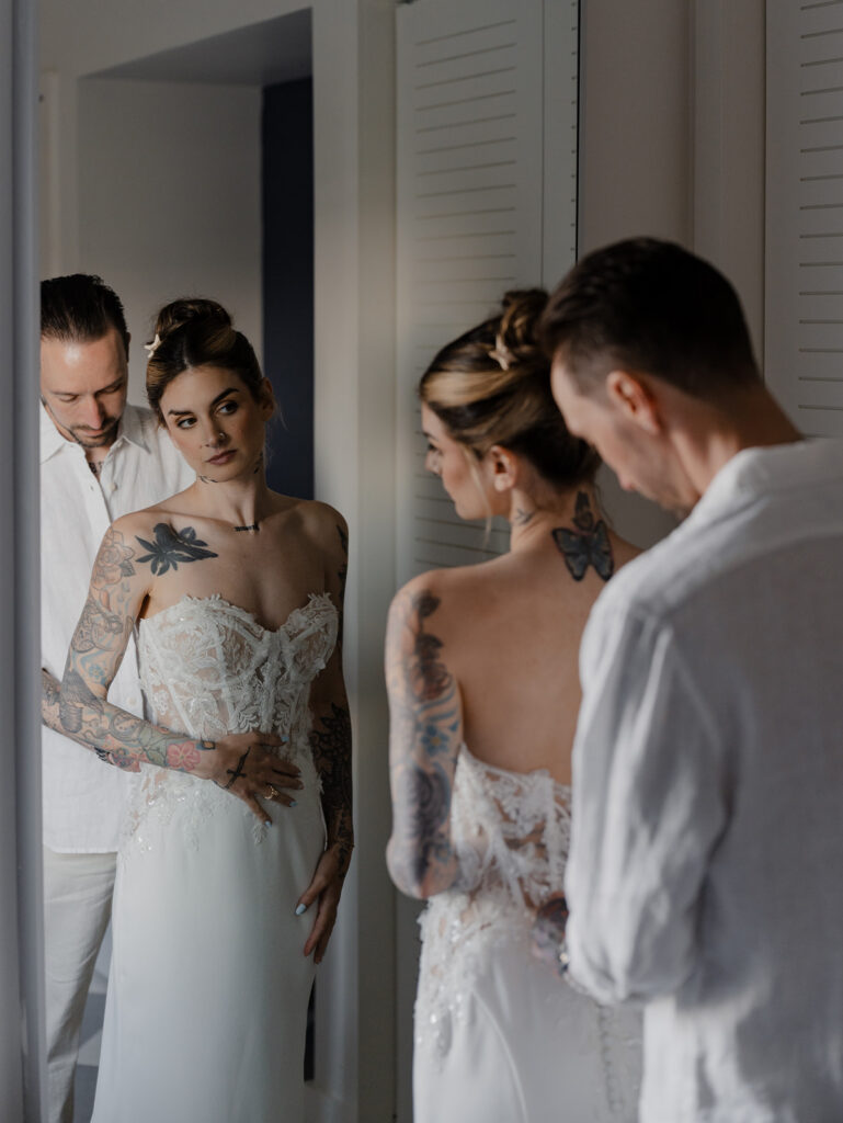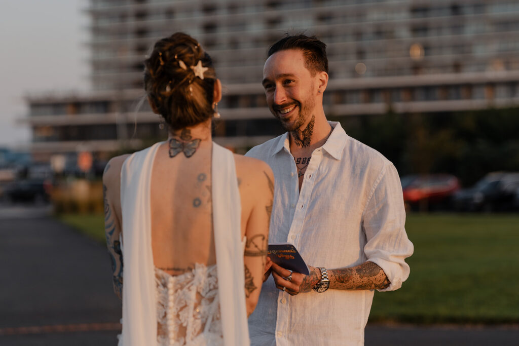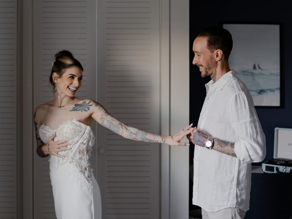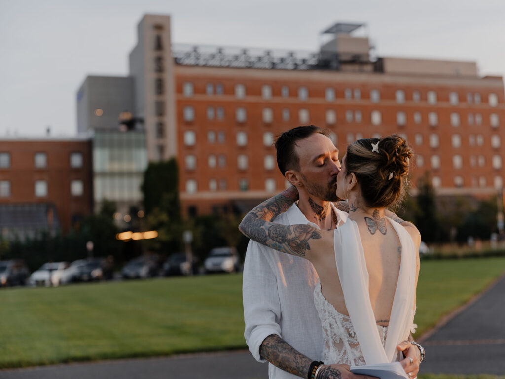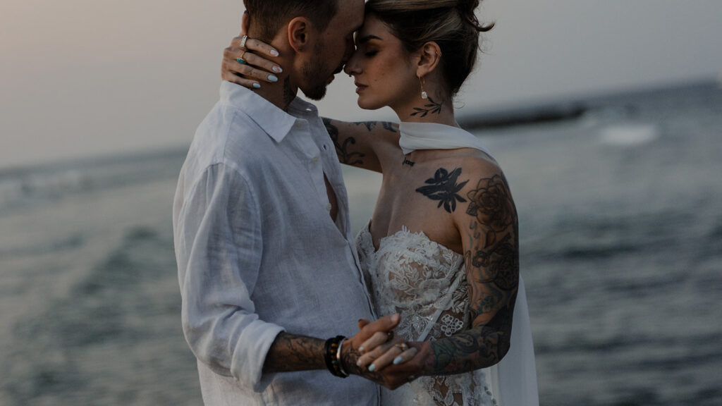 Chelsea and Michael renewed their vows during an intimate gathering at The Asbury Hotel in Asbury Park, New Jersey. After the vow renewal ceremony, they took the celebration to the boardwalk and shoreline, soaking in the romantic summer sunset. We finished out the night back at the hotel with a bold, paparazzi-inspired editorial shoot for these two rockstars!