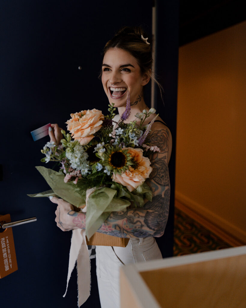 Floral design was created by Harley Rose Floral. Chelsea wore a gown from Silk Bridal Easton, with hair and makeup done at a local studio by Lock & Shade.